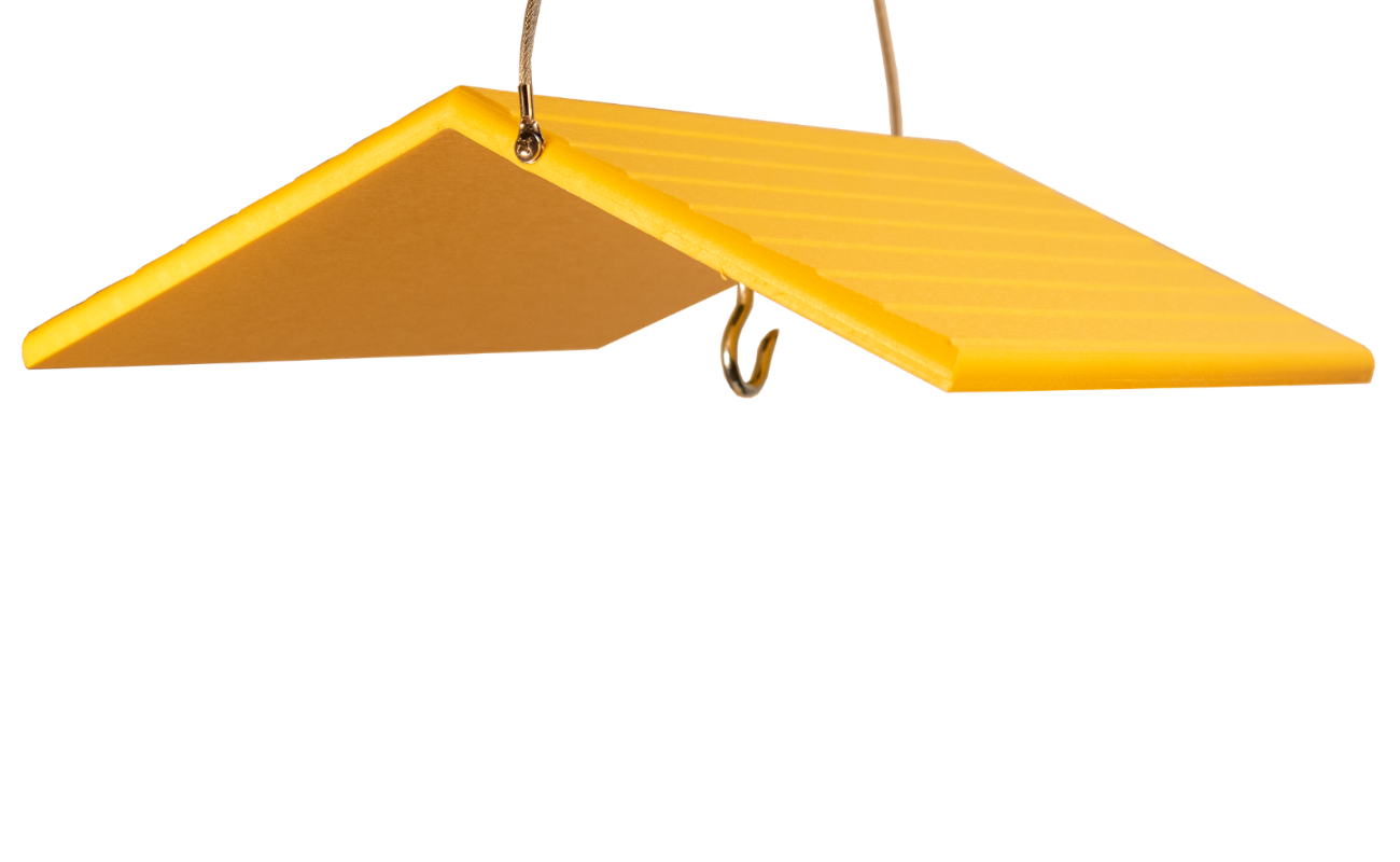Have you ever wanted a simple roof to hang over your favorite bird feeder or house to help keep snow or rain from ruining the seed or evicting your house guests? This JCs Wildlife Medium Poly Weather Cover might be just the ticket! Our medium sized birdhouse or bird feeder roof is made from recycled poly lumber material which will never crack, split or fade because of the elements. The hanging hook is centered to help cover your feeder or house from all angles. Dimensions are 10" D x 10" W x 3" H.