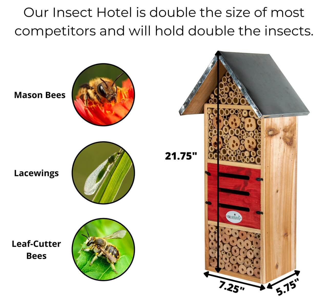JCS Wildlife Tall Insect Hotel - Great for housing Mason Bees, Leaf-Cutter Bees and Lacewings