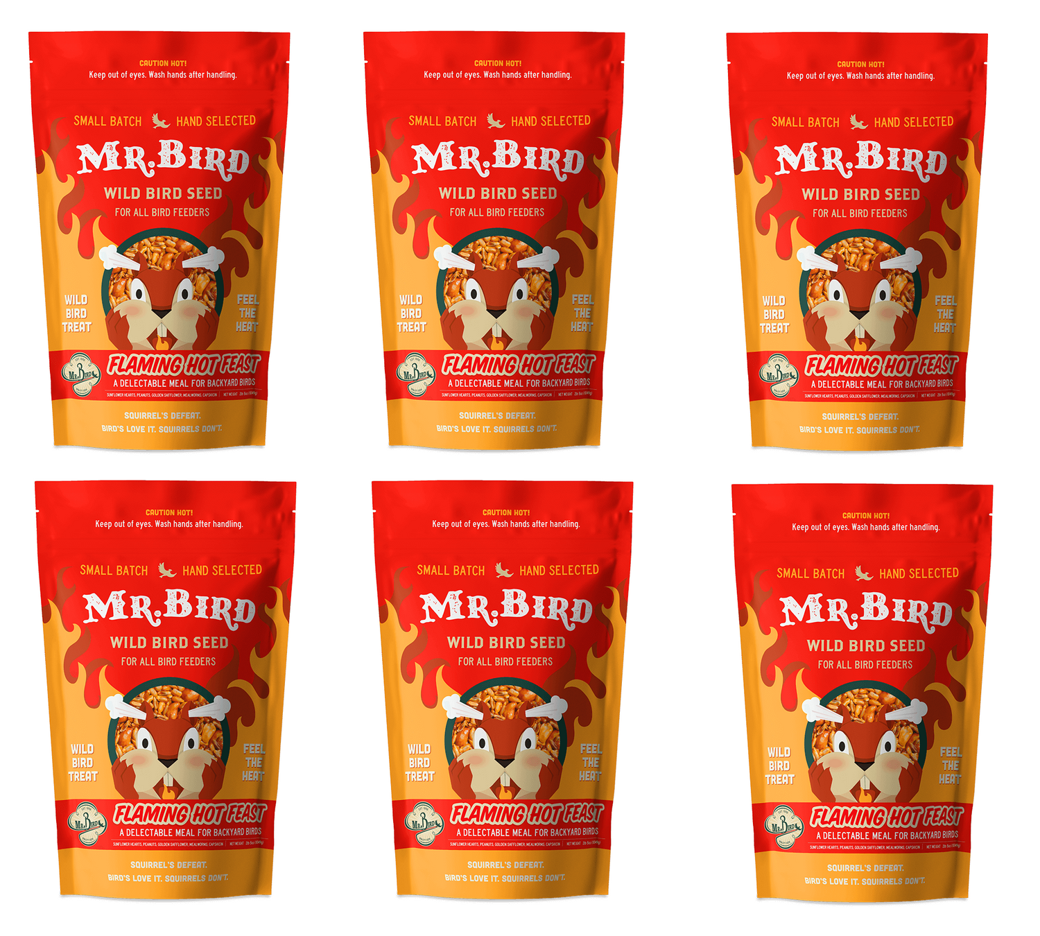 Your favorite spicy bird seed is now available in loose bird seed! Keep squirrels at bay with Mr. Bird Flaming Hot Feast Small Loose Seed Bag. Your favorite wild birds are in for a treat and your squirrels will finally be beat! This bird seed is infused with the natural oil of hot peppers. Contains sunflower hearts, peanuts, golden safflower, mealworms and capsaicin. In a resealable 2-pound bag, your birds will stay fed for longer and your seed will stay fresh and safer from spoilage. The birds seem to enjoy the spicy flavor while the squirrels and other mammals can’t stand the heat. Proudly made in the USA in small batches.