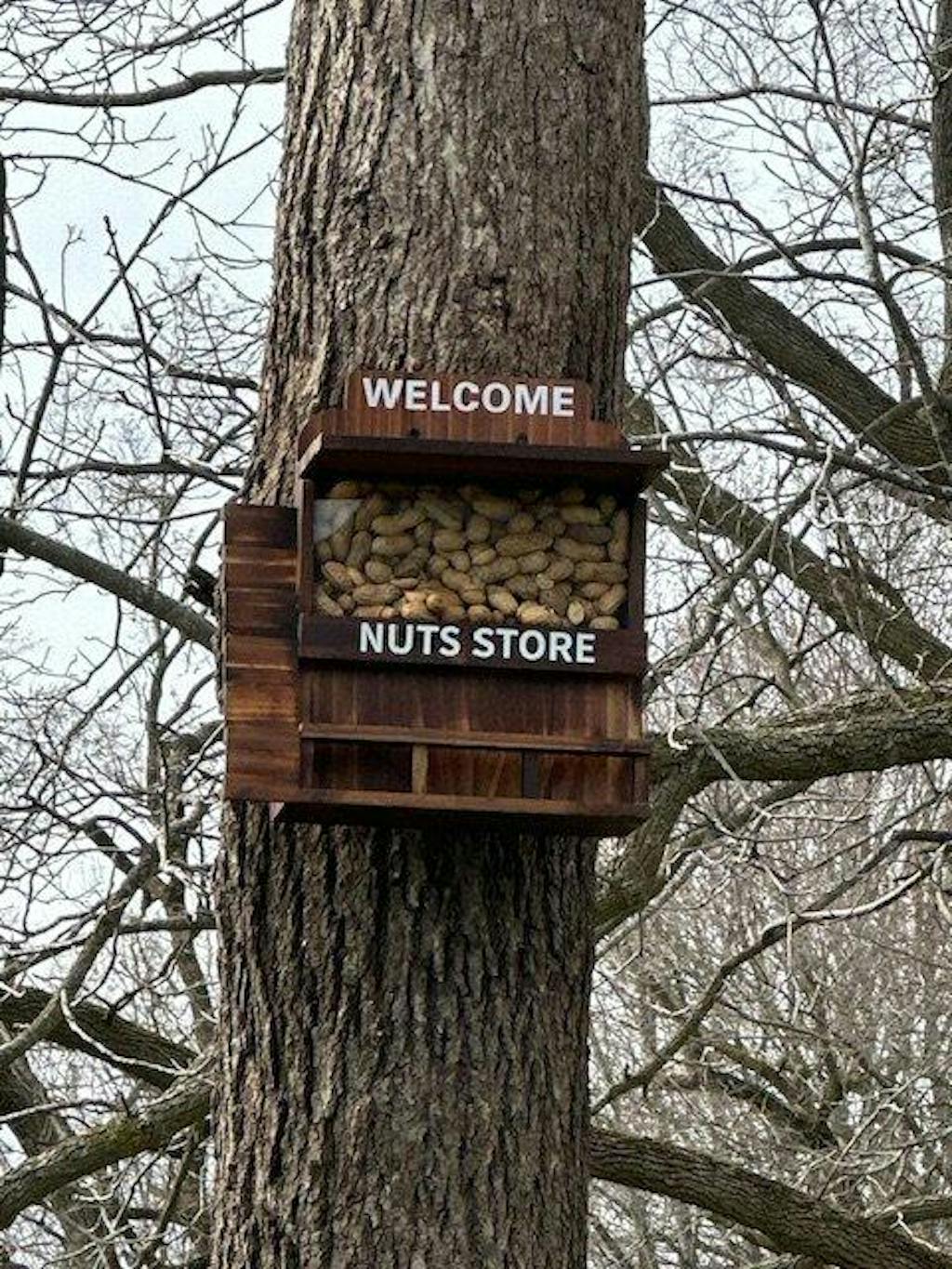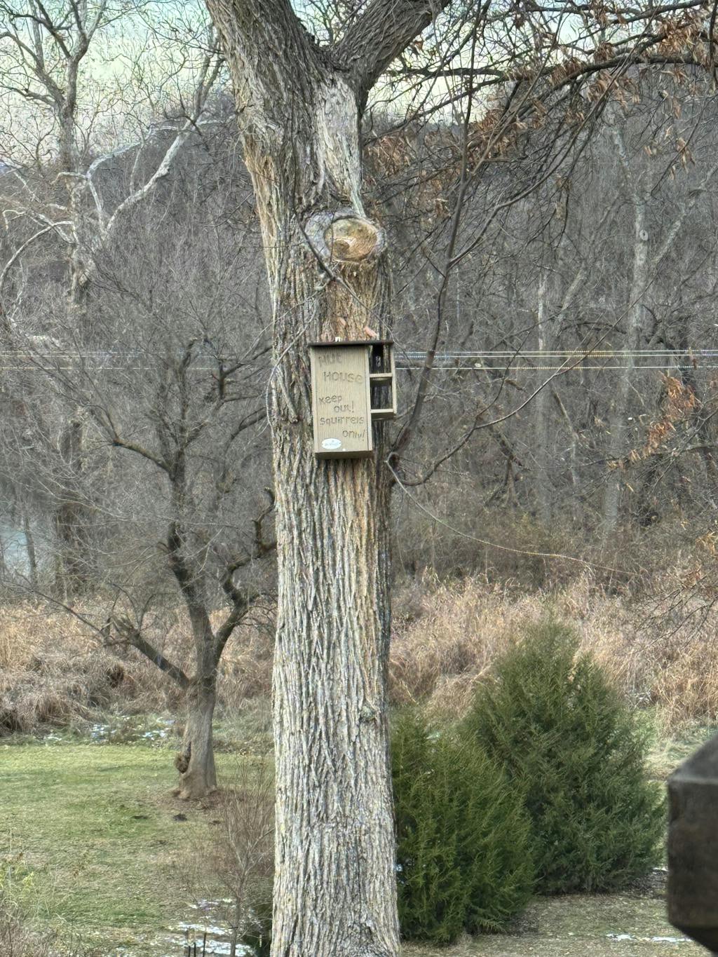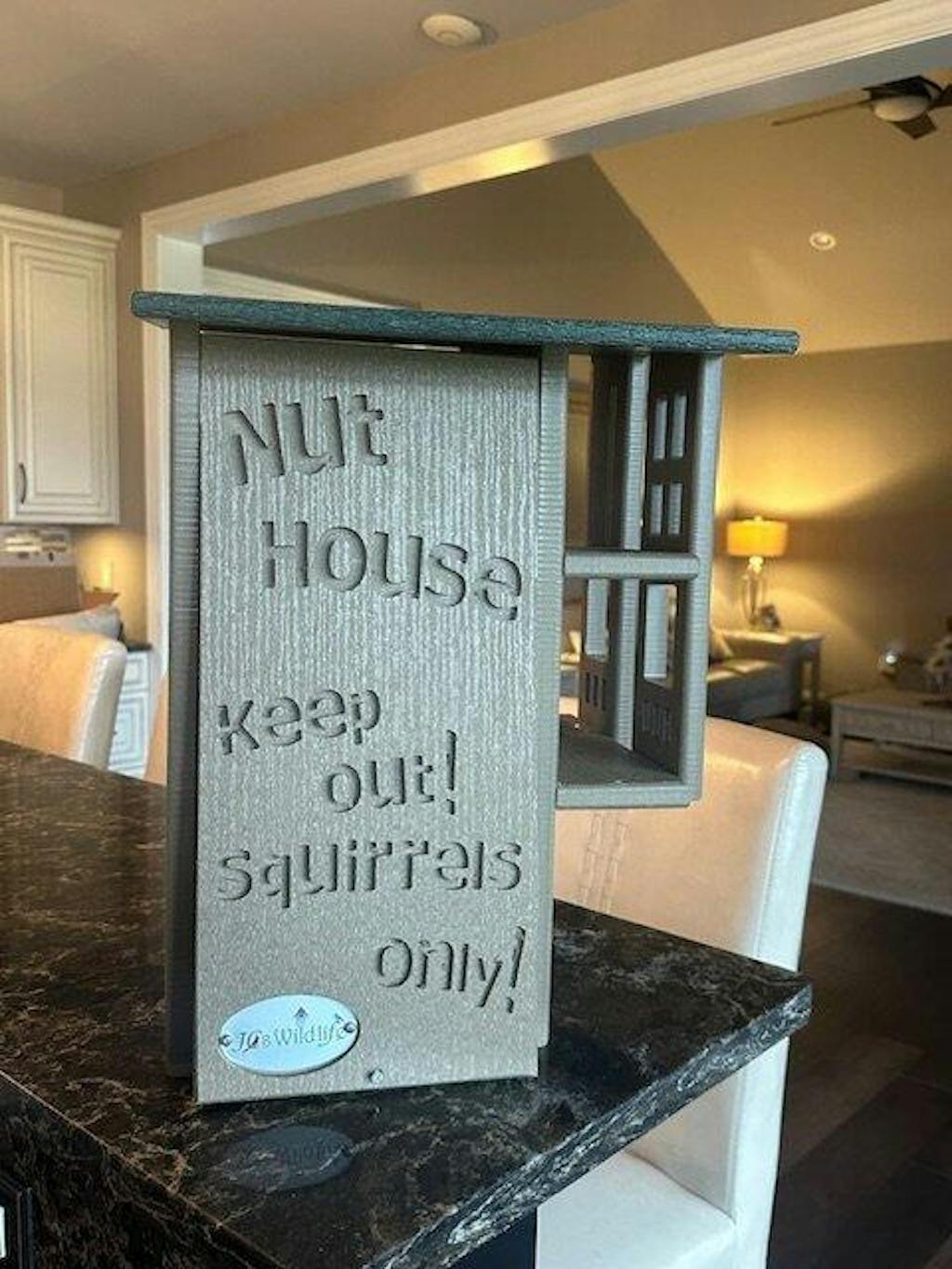 Invite your backyard's nuttiest creatures to move into their very own squirrel condo. The wording on the front says it all, it's the Nut House. This handmade squirrel house will keep the furry inhabitants entertained and safe at the same time. The resilient construction and innovative design is like no other home. This house is made specifically for squirrels. The predator guard and multi-tier platforms prevent predators like raccoons and opossums from having access to the inside. The front is able to be opened, providing easy access to clean the inside when it is empty. Our box gets rave reviews from squirrel enthusiasts and rehabilitators. Made in the USA!