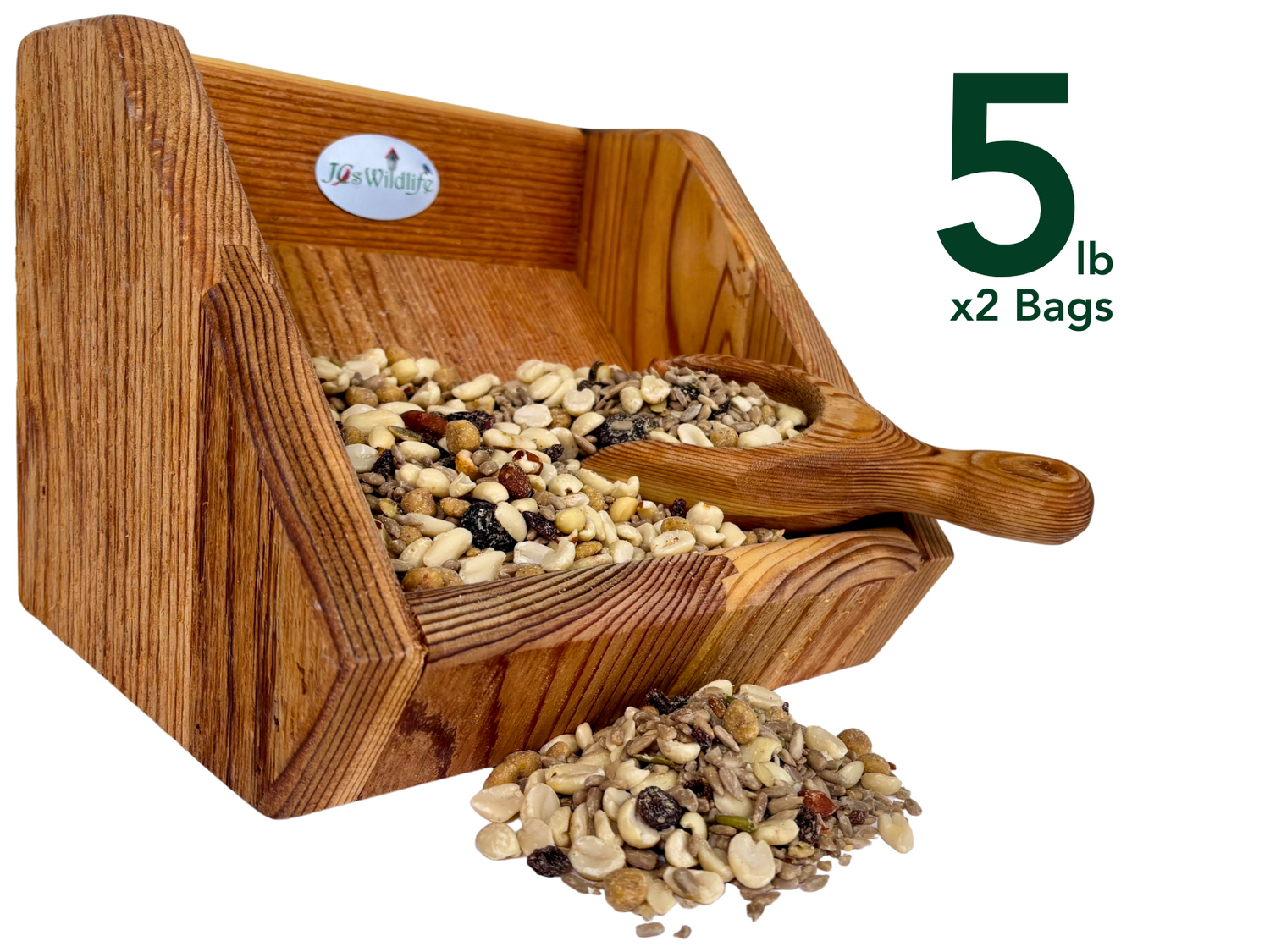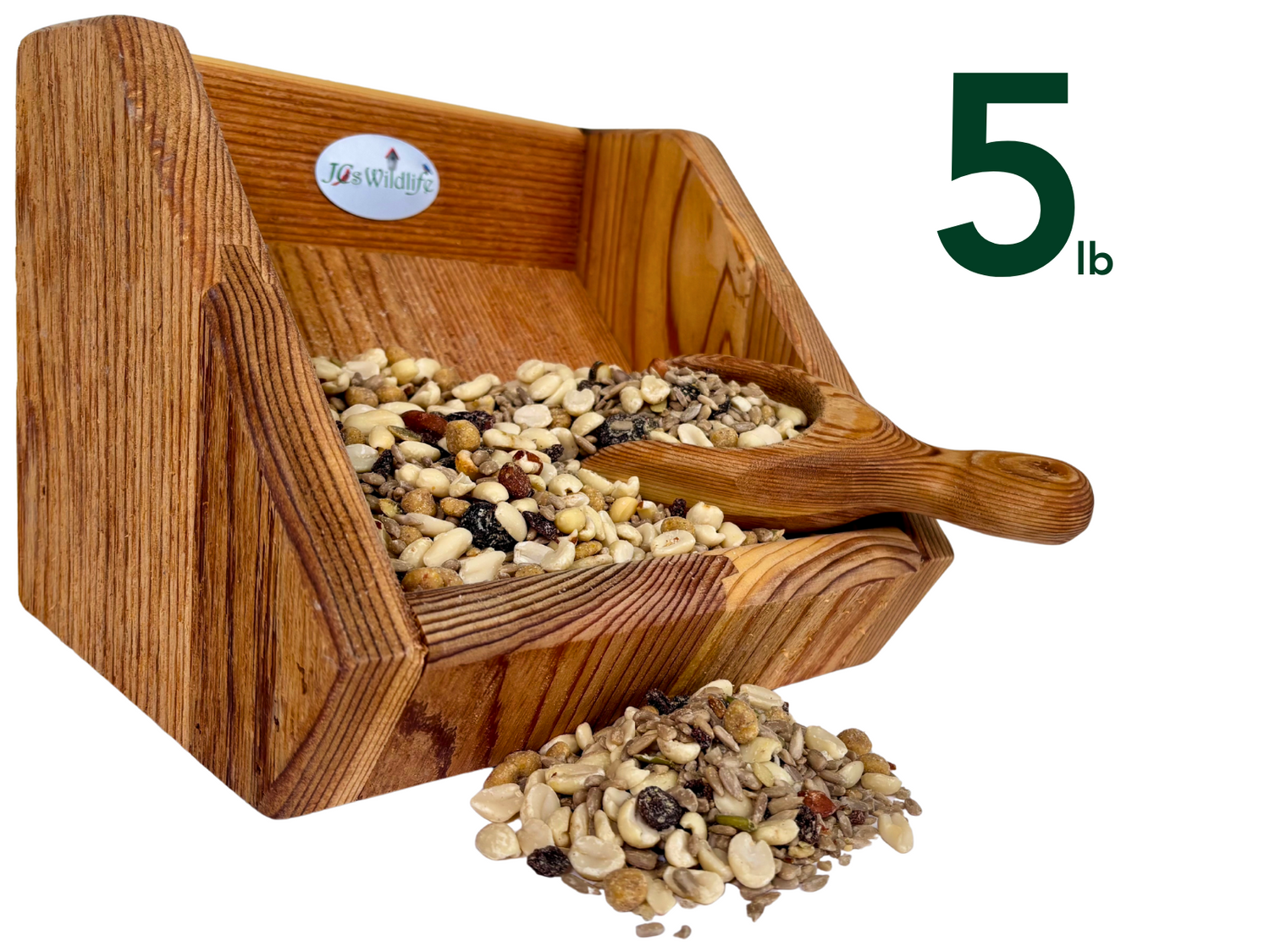 This blend is a real treat for backyard birders! The JCS Wildlife Woodpecker Favorite 5lb Loose Seed Bag is a shell-free mix packed with split peanuts, coarse sunflower chips, suet nuggets, raisins, cranberries, and shelled pumpkin seeds. It’s specially formulated to attract woodpeckers and other clingers—like nuthatches, chickadees, and titmice—while keeping cleanup minimal around patios and sidewalks