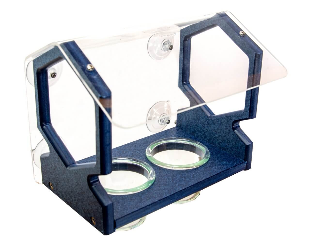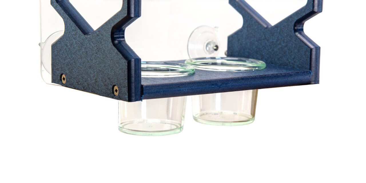 The design of this window bluebird feeder also allows for easy cleaning! Proudly made in the USA from Recycled Poly Lumber and 1/8" Plexiglass with stainless steel screws, and 2 mealworm jars. The hanging cable for this feeder comes attached, and the dark blue of the poly lumber adds a wonderful pop of color to your window. This window feeder is a great place for the Bluebirds to perch and enjoy their mealworm treat!