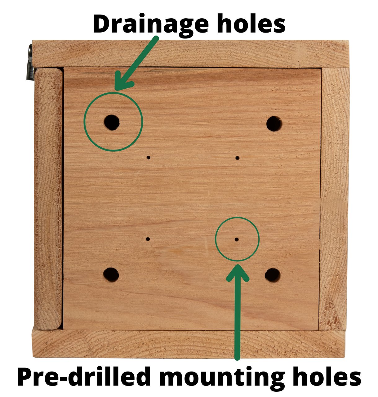 A door on the side of the house allows for easy access to the interior - making clean out a simple and quick task. Simply open the clean out door and replace the nesting material inside when performing annual maintenance. This Wood Duck House also comes with pre-drilled drainage holes so that the house stays cleaner and safer for the nesting ducks.