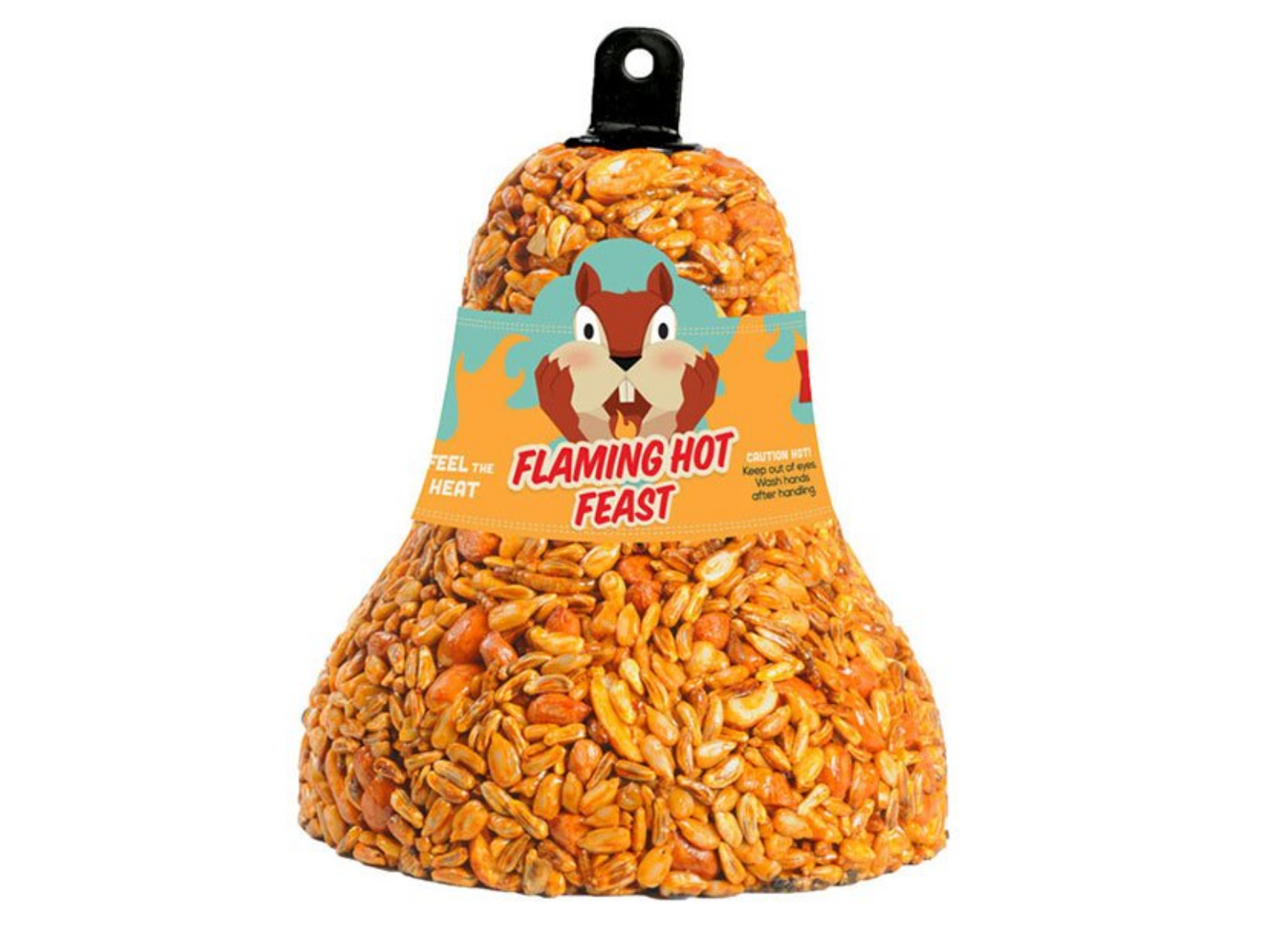This 100% seed bells will feed the birds while keeping the squirrels away. What makes this product special is the formula; sunflower hearts, peanuts, golden safflower, meal worms and it is extra spicy.
