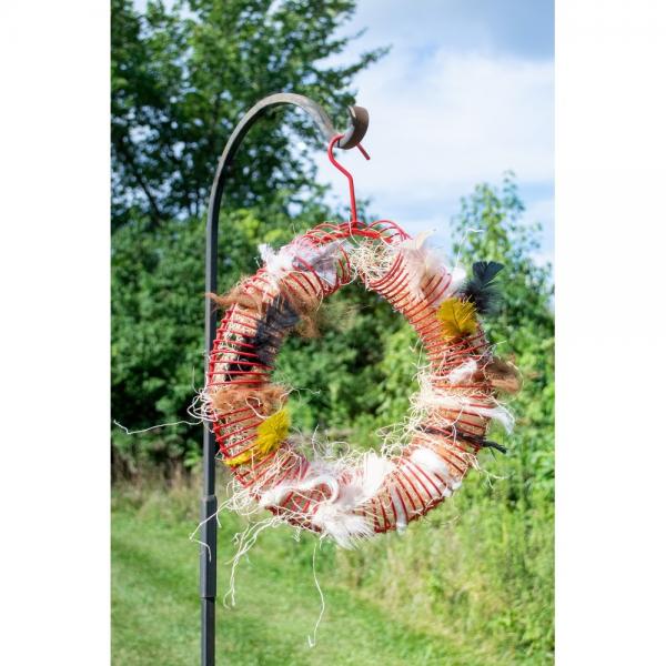 Fill this 13-inch wreath ring with whole peanuts to create an irresistible treat that keeps squirrels and jays engaged and satisfied away from your other feeders. The simple design makes refilling effortless—just load and hang. Beyond the feeding season, repurpose the wreath to offer nesting materials come spring. The 7-inch inner diameter accommodates generous portions, while the compact 2¾-inch spring mechanism ensures secure, reliable hanging. A versatile, year-round addition to any wildlife feeding station.