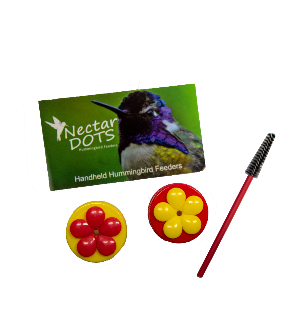 Red and Yellow Nectar Dots Hummingbird Feeder Kit - Feed Right from Your Hand! Includes Easy Instructions and Cleaning Brush!
