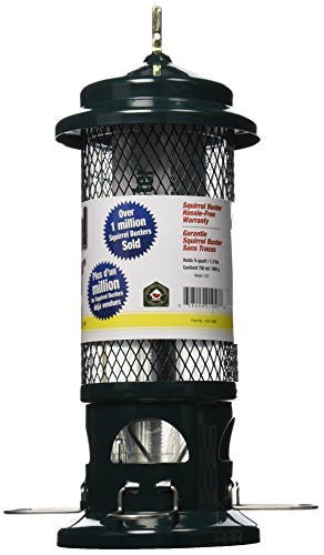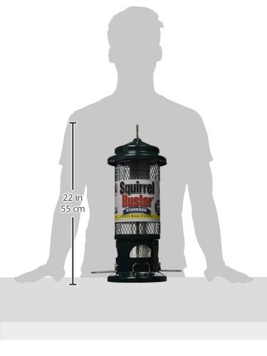 -Patented squirrel-proof design-Weight adjustable closing mechanism-Proven Seed Saver Technology-Patented Seed Tube Ventilation system-Chew proof, rust proof, RoxResin seed tray In Use Dimensions: 21.5 Inches x 8 Inches x 8 Inches Birds That Use This Feeder Freedom to locate your feeder Now that you no longer have to worry about squirrels, you are now free to locate your feeder just about anywhere. Position your feeder over your favorite window, by your deck or in a nearby tree, for those great close-up views. Use wall brackets, branch and extension hooks to help you hang your feeder. Dismantling & Assembling Your Feeder Squirrel Buster Standard has been designed to dismantle easily for filling and cleaning. 1. Lift the Negative Grip tube 2. Unhook the hanger 3. Lift off the metal mesh shroud 4. Fill with seed 5. Replace shroud 6. Insert hooked end of hanger 7. Slide Negative Grip Tube over hanger hook 8. Hang feeder Squirrel Buster Standard Warranty Squirrel Buster Standard is guaranteed to be free of material or manufacturing defects and against squirrel damage for a period of 24 months from the date of purchase. Brome Bird Cares sole responsibility will be to repair or replace a defective or damaged product. The warranty applies only when the product is used according to manufacturers instructions. The warranty does not apply to damage from attempted or unauthorized repairs, cosmetic scratches from squirrels or other animals, damage from accidents, dropped or fallen feeders, improper handling, shipping, misuse, abuse, neglect or damage from chipmunks, raccoons, bears or other animals. No other warranties expressed or implied are made. Brome Bird Care shall not be responsible for any incidental or consequential damages. Proof of purchase and the prepaid return of a defective part or product may be required by Brome Bird Care.