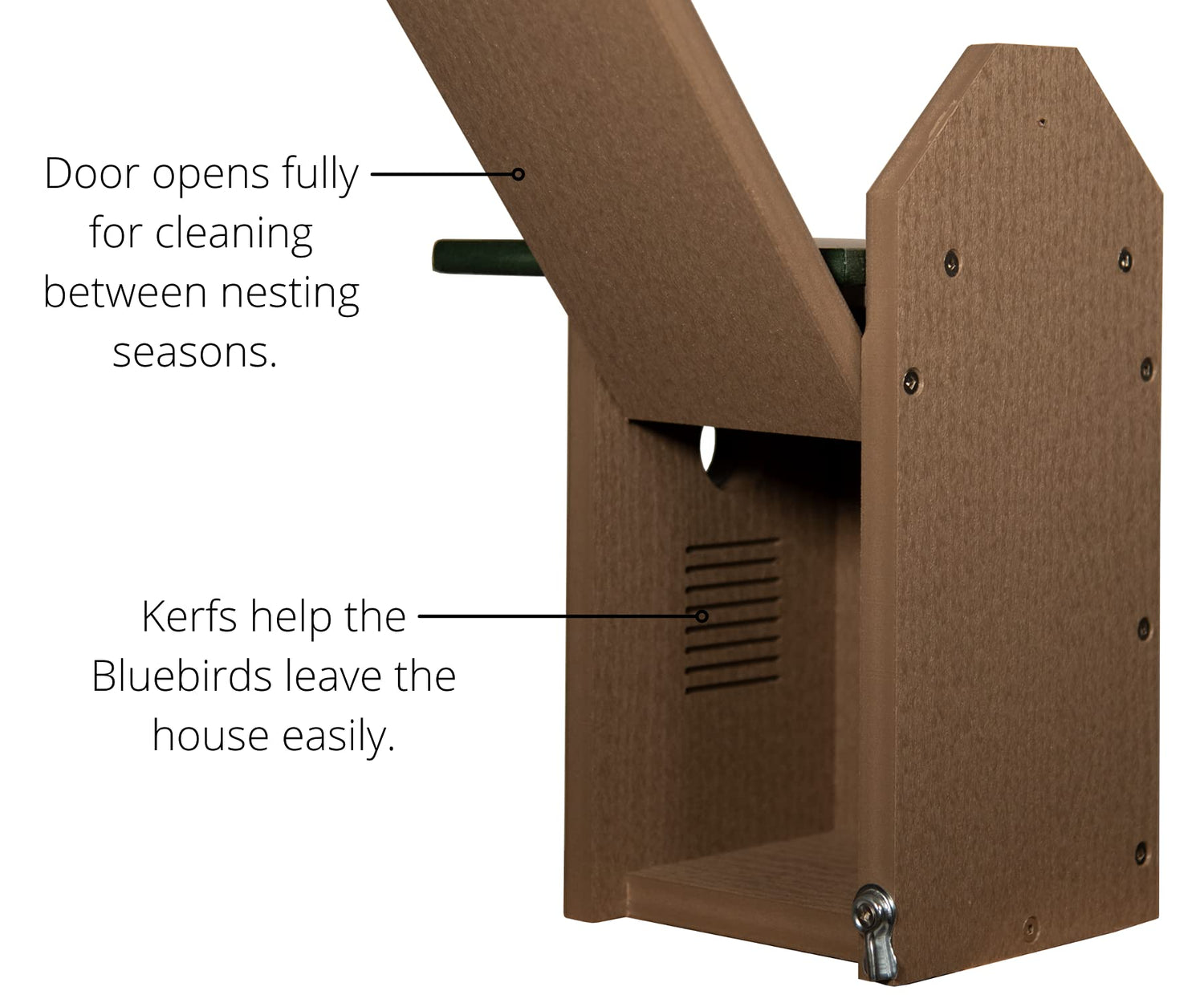 - Entrance hole is 1.5" in diameter, perfect for bluebirds