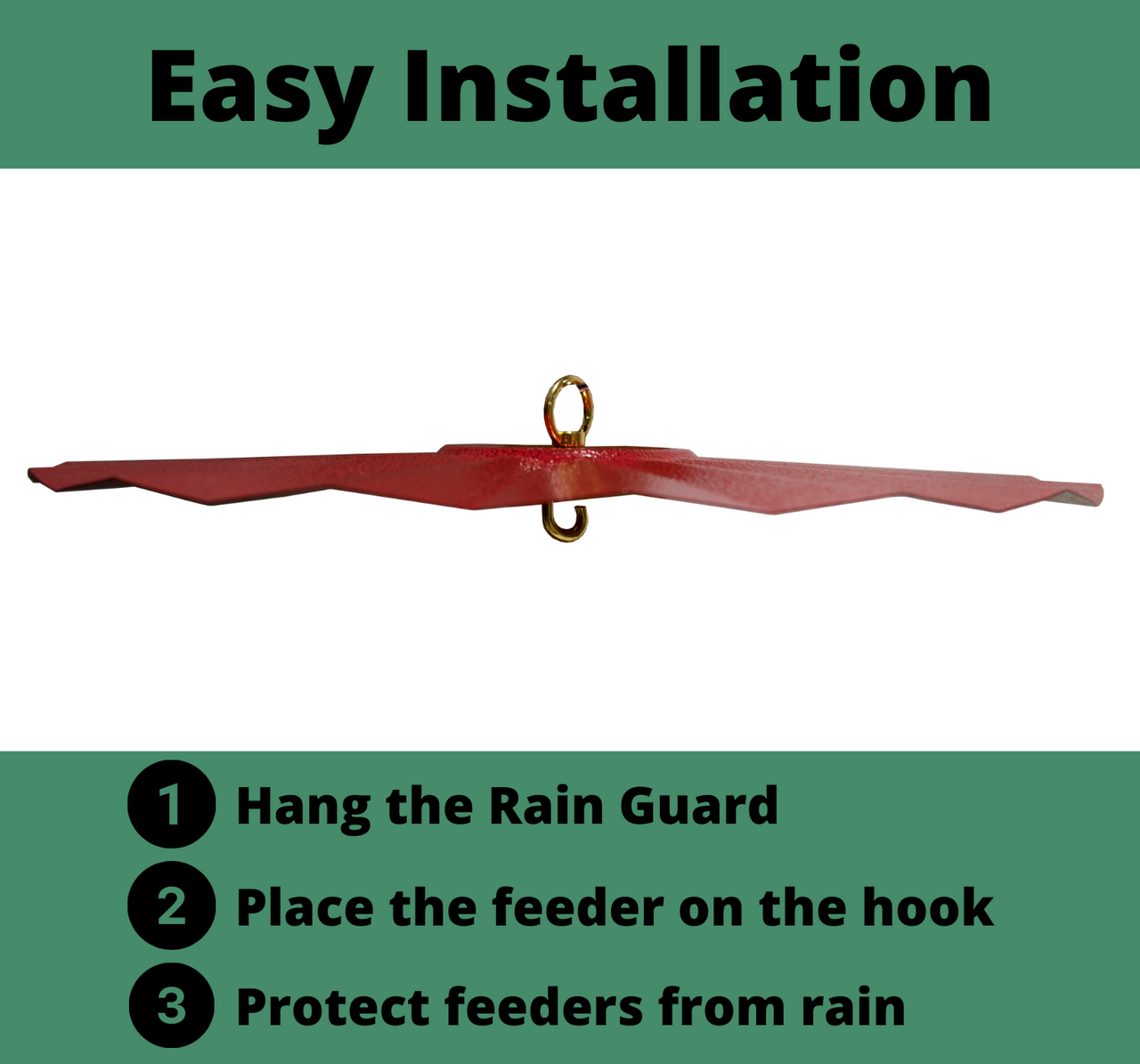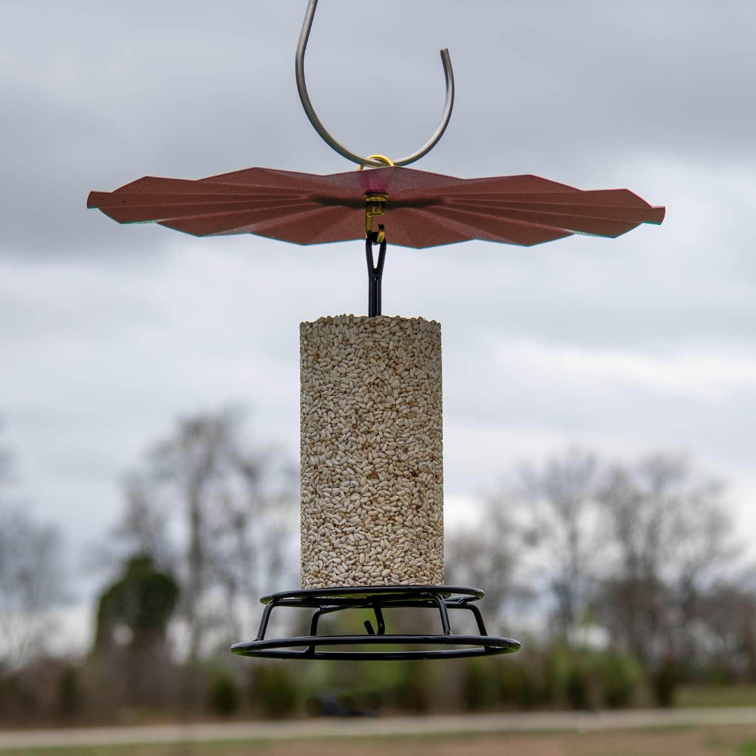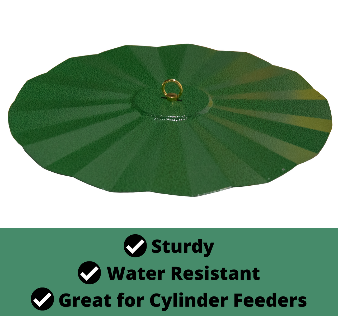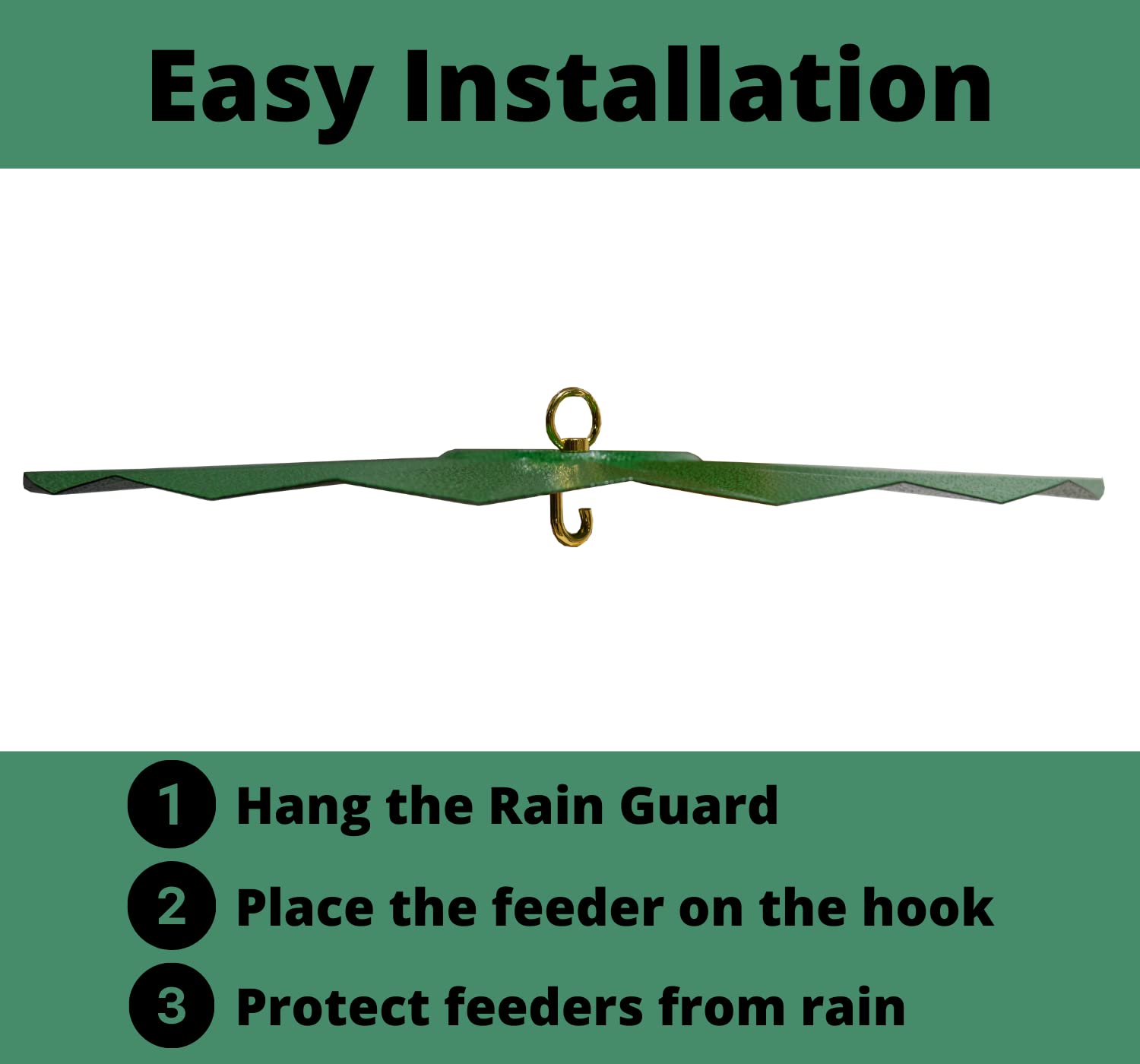 Protect your precious bird seed with the JCs Wildlife 16" Metal Rain Guard. Featuring a sturdy hook on the under side of the metal cover, hang your choice of bird seed cylinders and seed blocks closely underneath for maximum protection. This rain guard is treated with a protective powder coat paint which will stay vibrant in your garden for seasons to come--functionality with flair! Keep your bird seed dry, and your birds will be happy and healthy! Product manufactured in China.