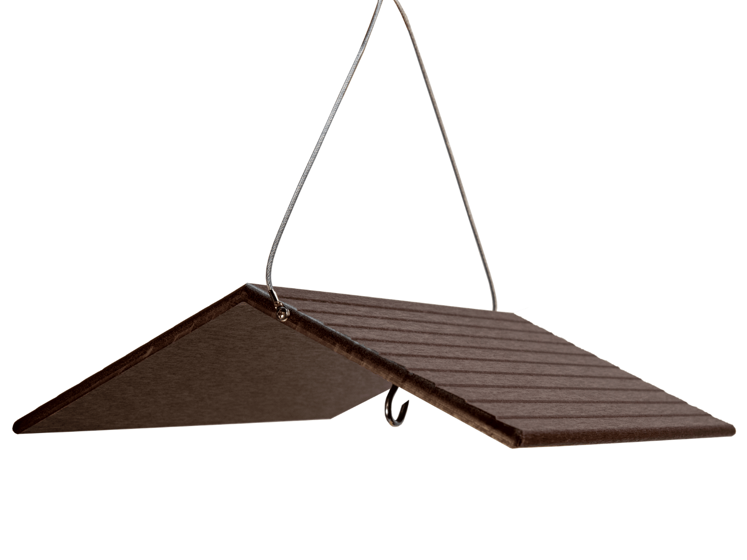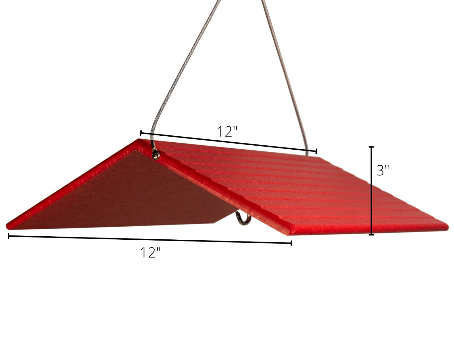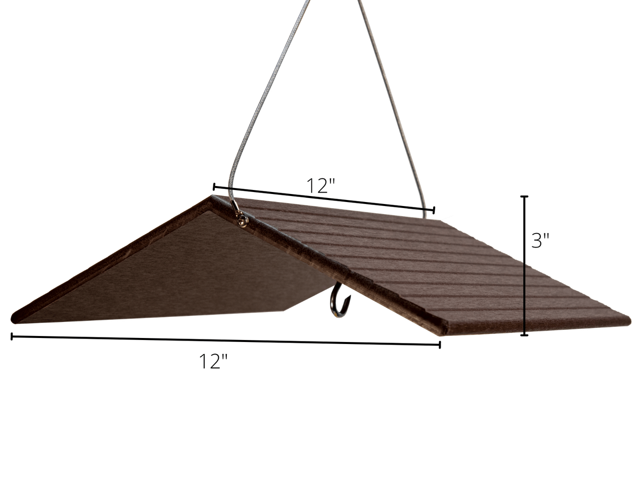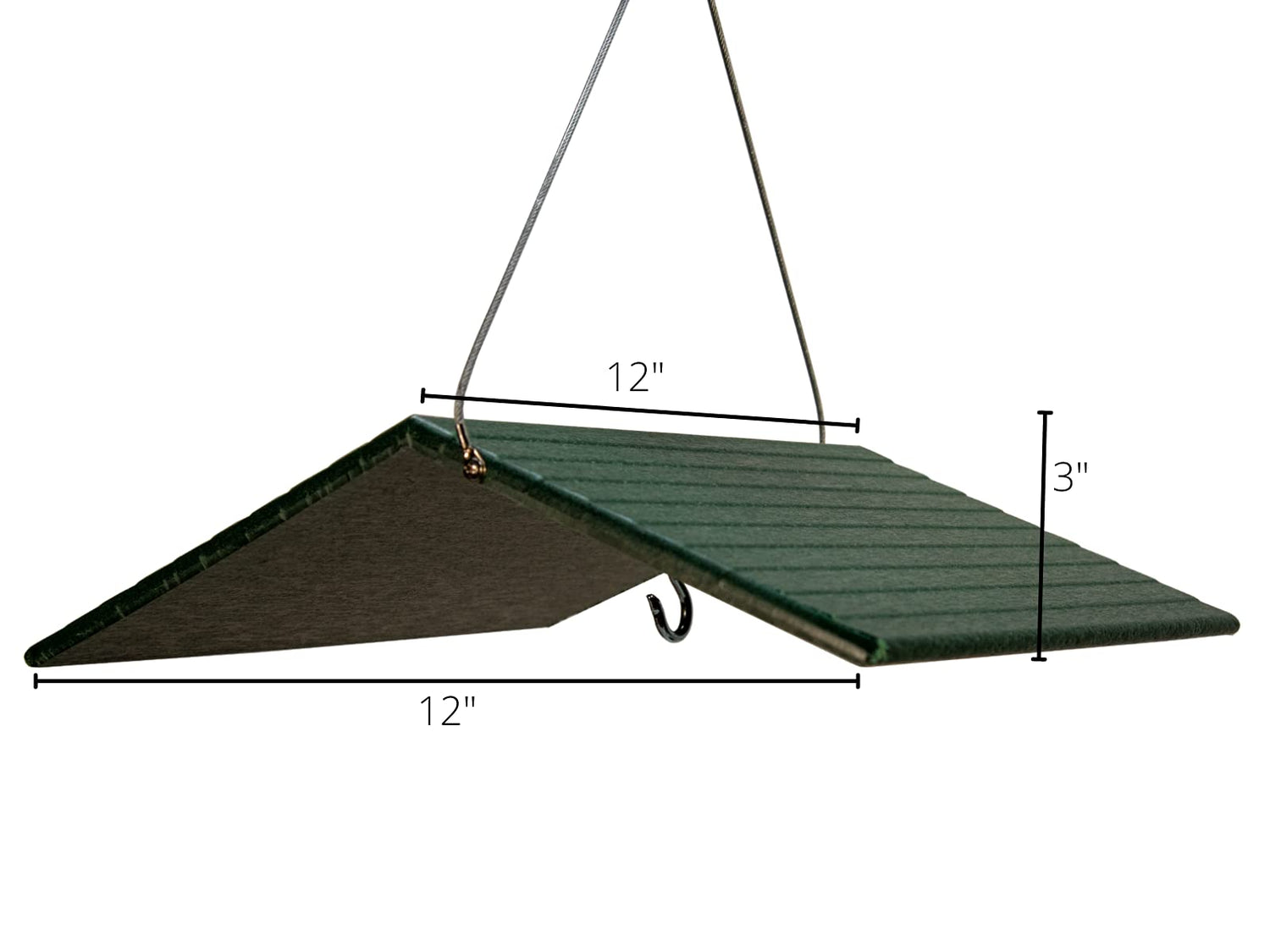 Have you ever wanted a simple roof to hang over your favorite bird feeder or house to help keep snow or rain from ruining the seed or evicting your house guests? This JCS Wildlife Large Poly Weather Cover might be just the ticket! Our large sized birdhouse or bird feeder roof is made from recycled poly lumber material which will never crack, split or fade because of the elements. The hanging hook is centered to help cover your feeder or house from all angles. Dimensions for this weather cover are 12" W x 11.75" D x 3" H