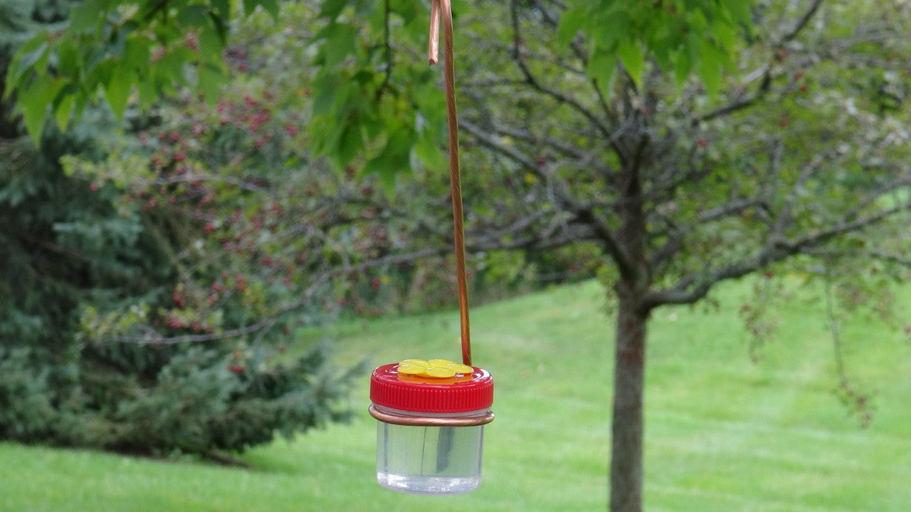 Nectar DOTS Copper Single Hanging Hummingbird Feeder With Red and Yellow Lids - 1 is backordered and will ship as soon as it is back in stock.