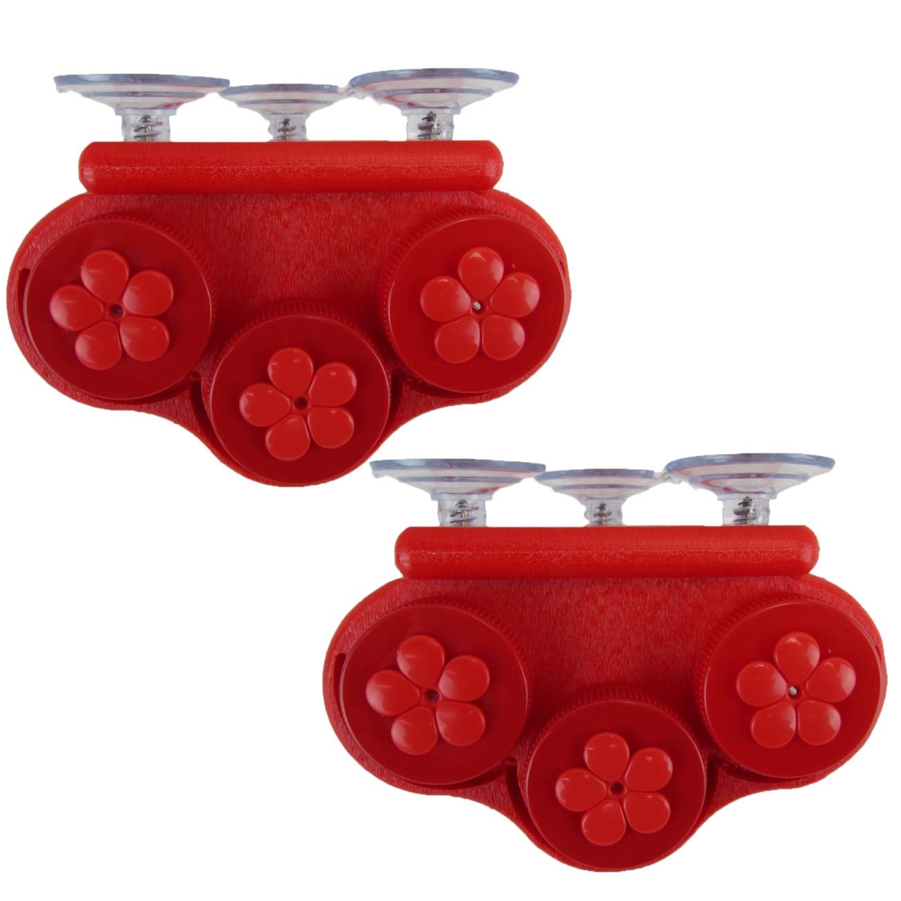 Feed your happy hummingbirds with the Triple Window Nectar DOTS! A wonderful addition to any garden, the Triple Window Nectar DOTS Hummingbird Feeder includes three large 1.25 oz capacity Nectar DOTS nestled into a handmade holder made with eco-friendly recycled poly lumber. With a total 3.75 oz nectar capacity, this nectar feeder is easy to fill and clean, minimizing nectar waste and ensuring that your hummingbirds are safe from bacteria due to spoilage. Simply clean each Nectar DOT with mild soap and rinse thoroughly before first use and after each feeding, and you'll be feeding your hummingbirds in no time. This nectar feeder will also stay strong on your window with quality suction cups. Simply fill the DOTS with nectar and place in the red poly window holder.