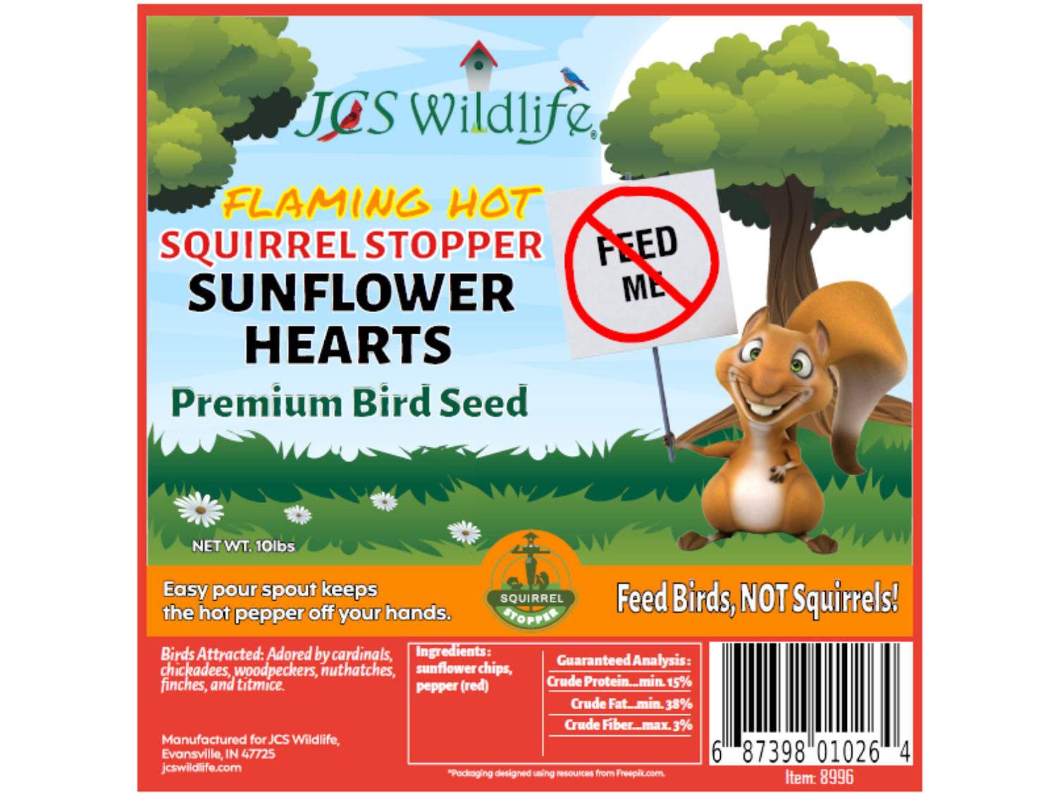 JCS Wildlife Squirrel Stopper Sunflower Hearts 10lbs Loose Seed Bag
