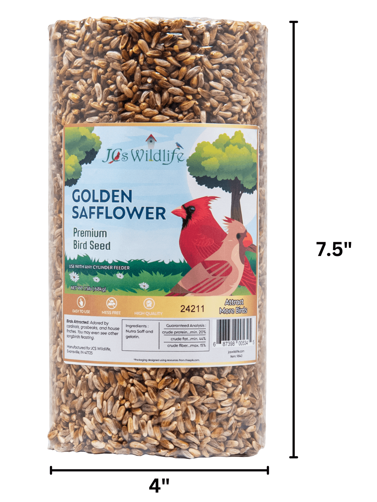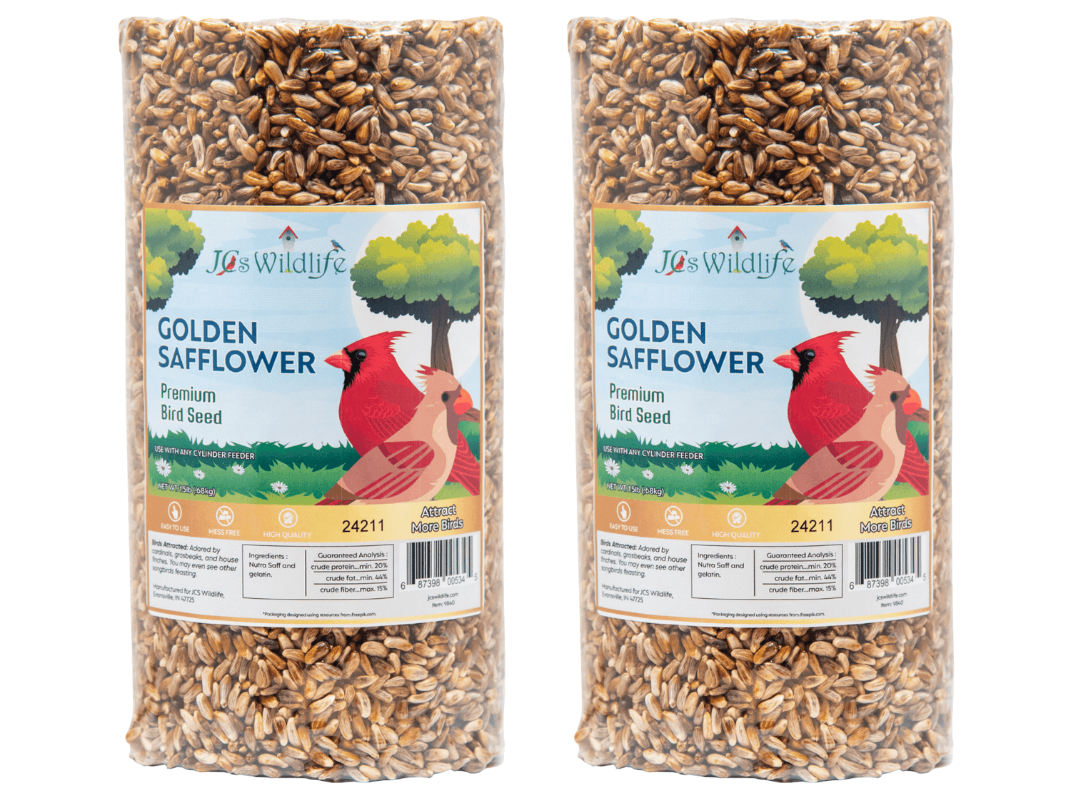 JCS Wildlife Golden Safflower Premium Bird Seed Small Cylinder