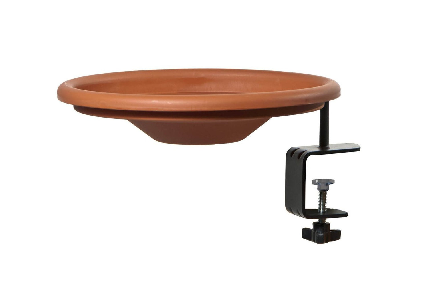 Watch your birds bathe on your porch with the Deck Mount Bird Bath! Capable of being mounted to virtually any deck railing(smaller rails require space holders), you can let your little birds bathe in 1/4" of water all day long. With it's lightweight design and easy removal, cleaning this bath is hassle free!