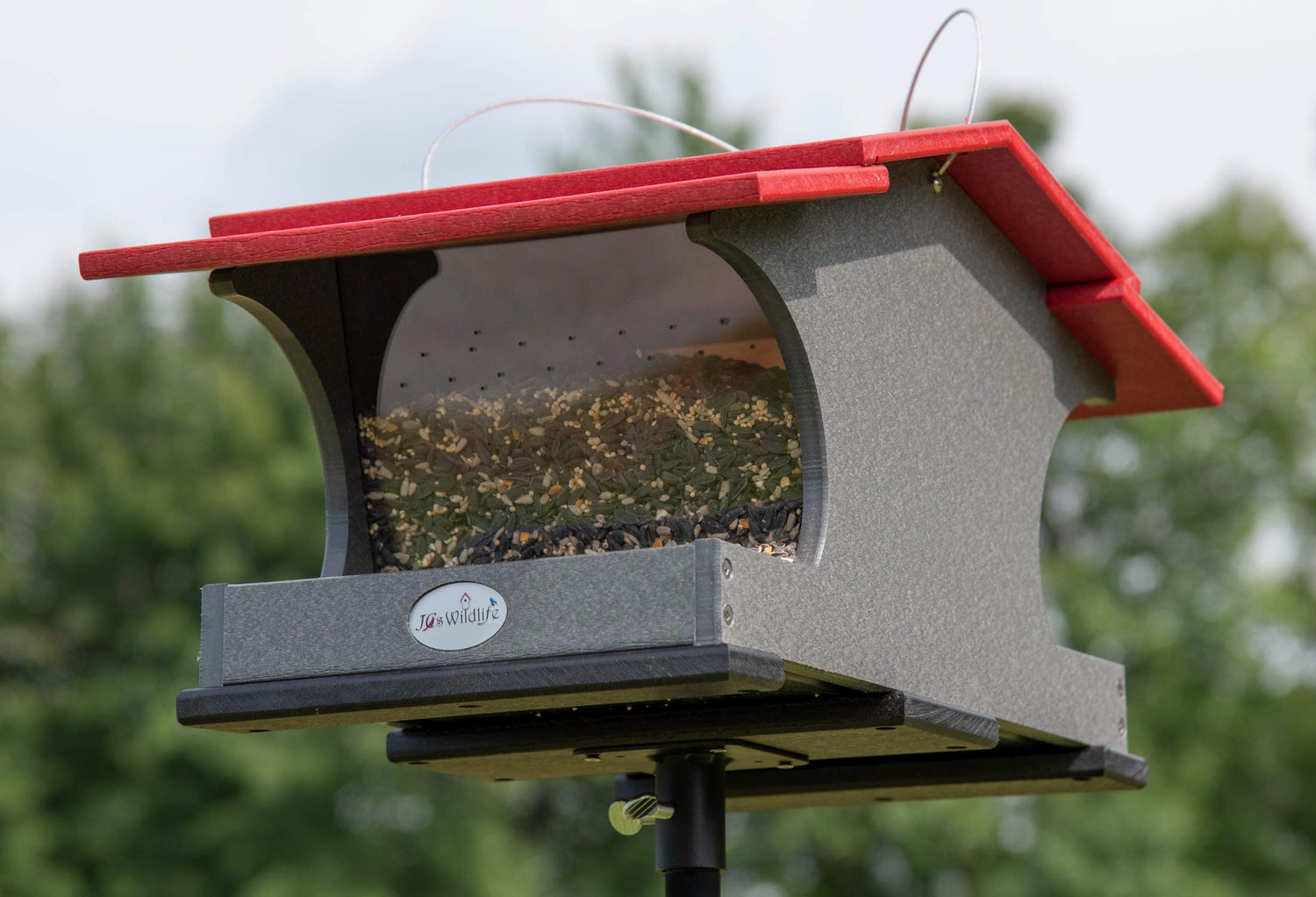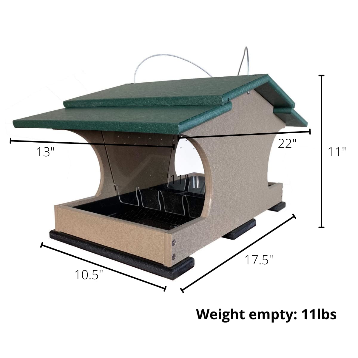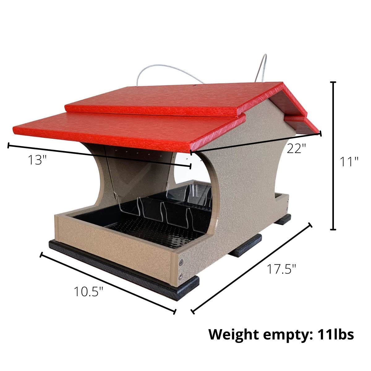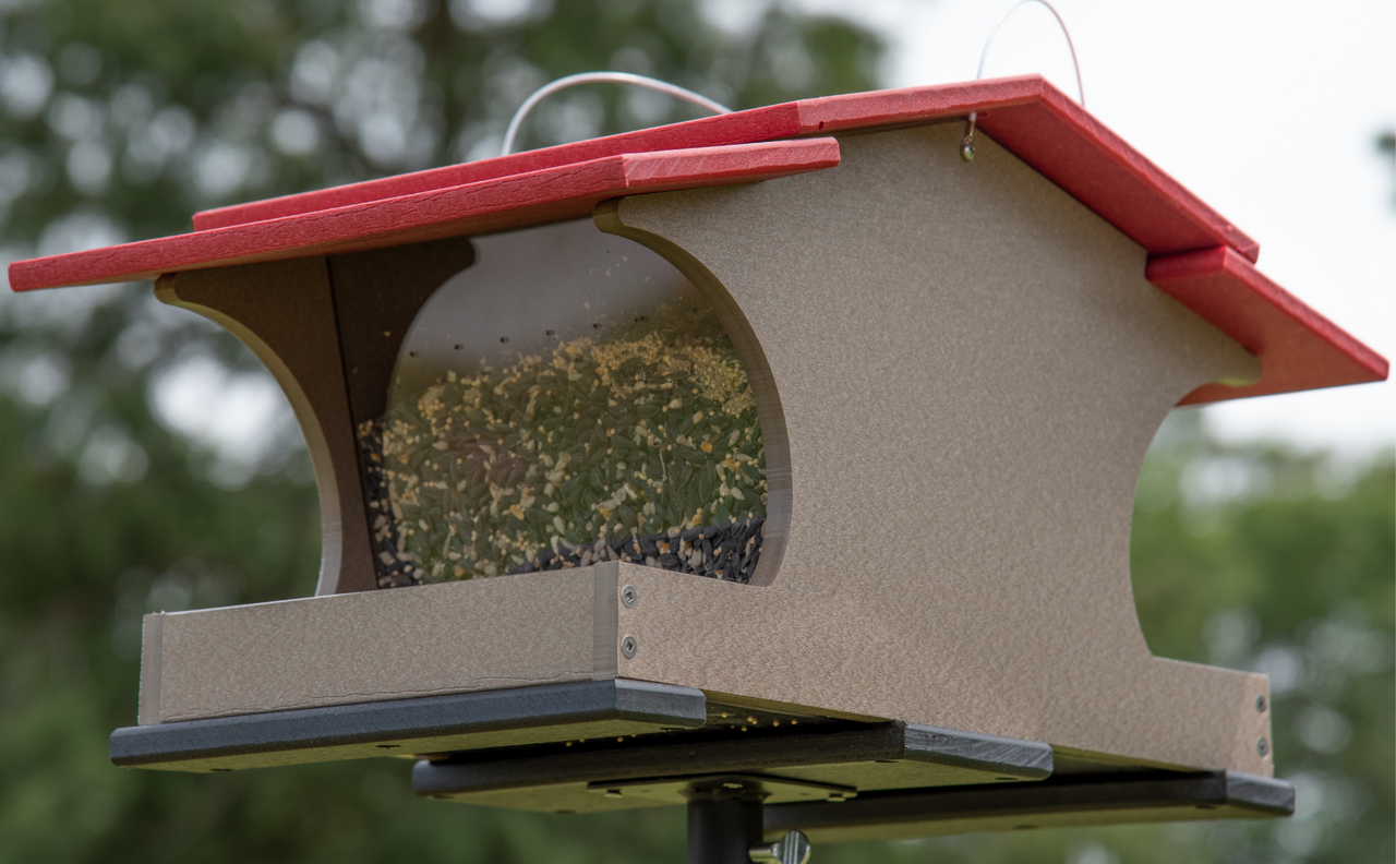 • Our largest feeder yet! Holds around 2 gallons of seed.