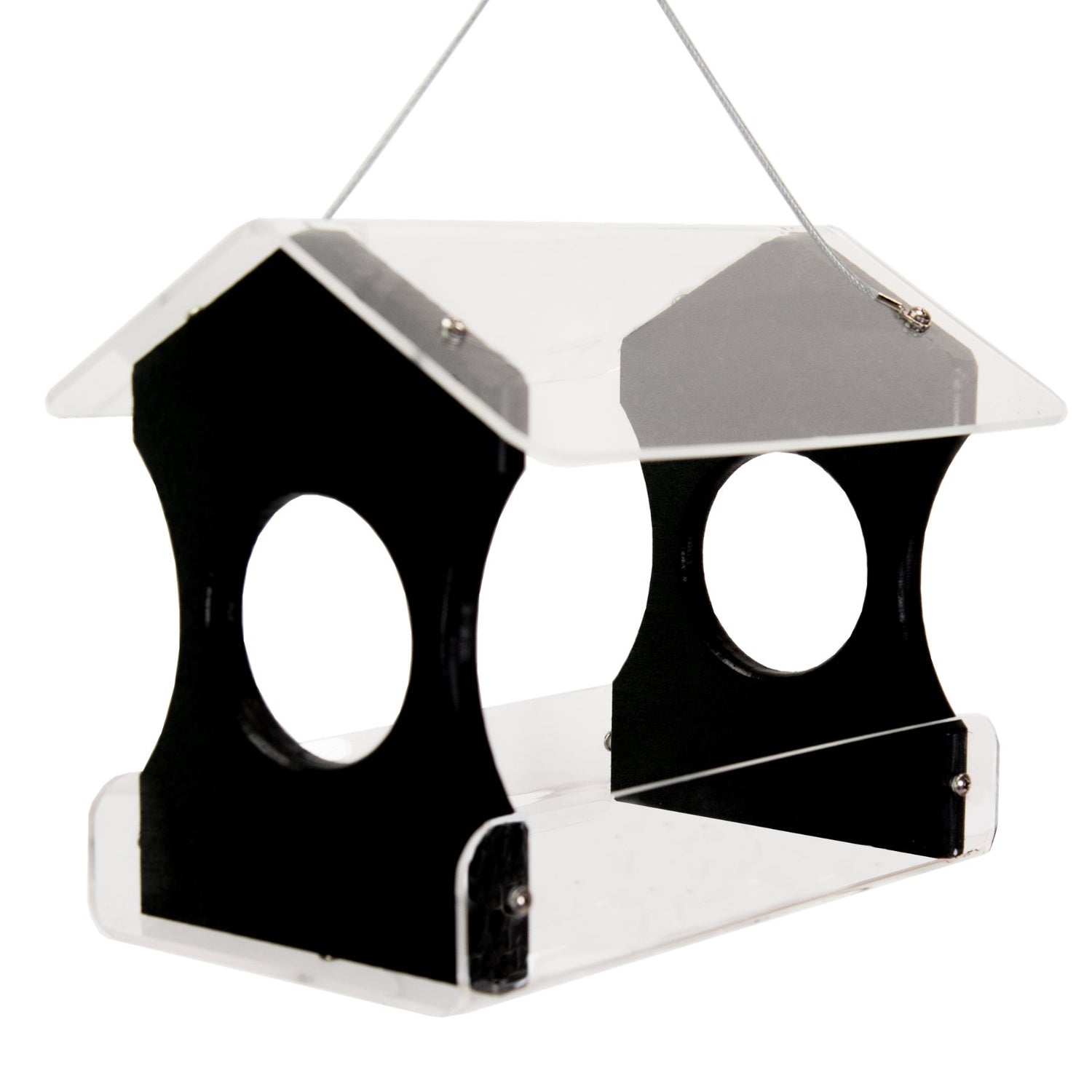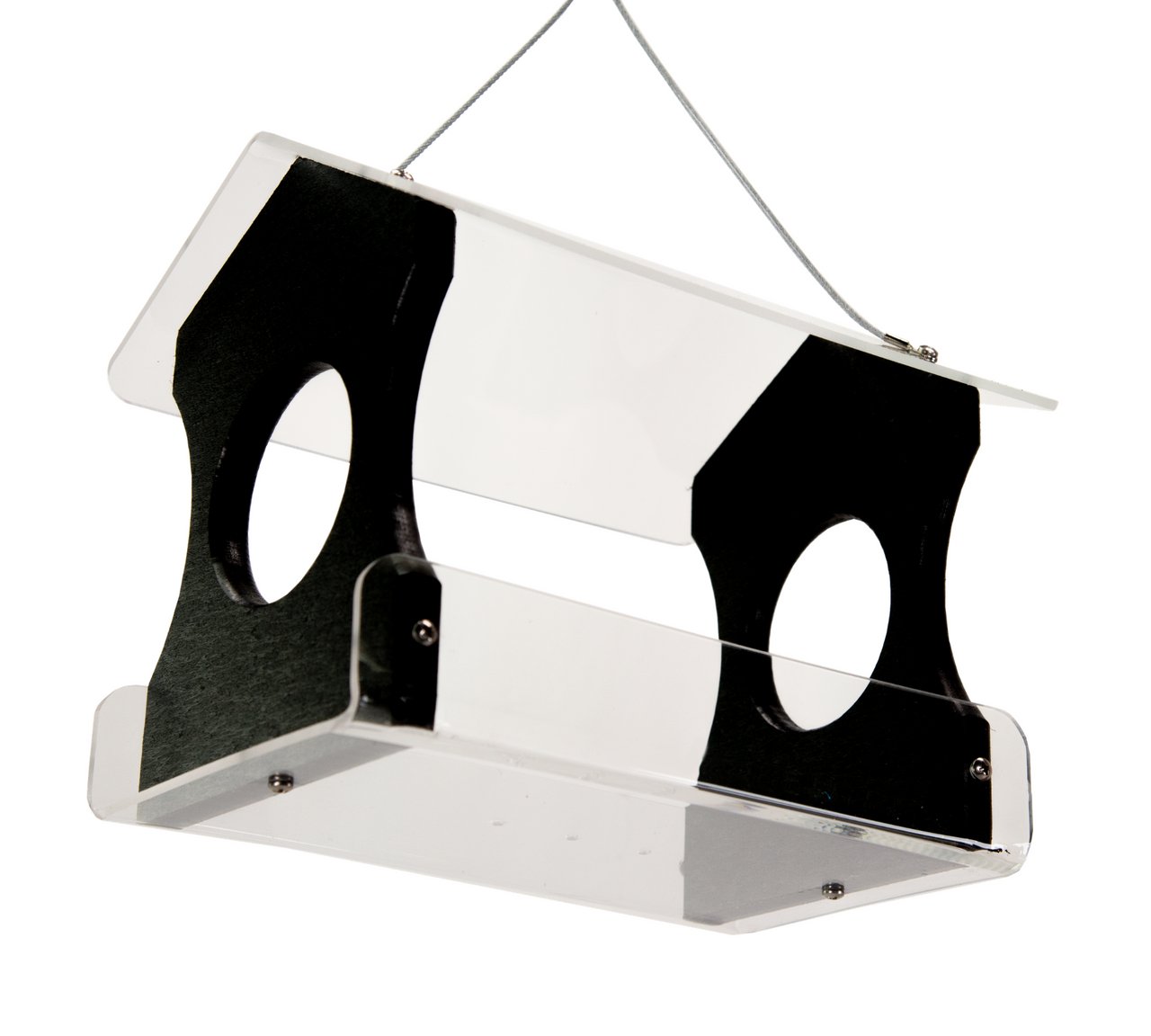 The bright, vibrant color is attractive to many birds while the eco-friendly recycled plastic is crack and fade resistant. The sturdy cable allows the full feeder to hang anywhere. The feeder's open, fly-through design makes it easy to clean for you and easy to access for the birds.Clinging birds can perch on the edges or the side holes while other birds can enjoy the food from inside the feeder.