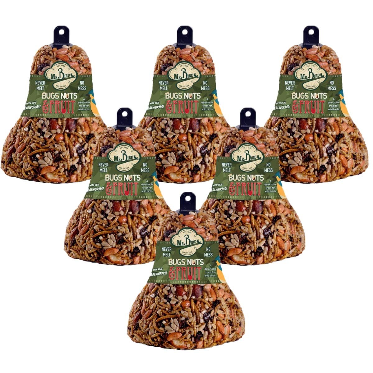 Mr. Bird Bugs, Nuts, & Fruit Wild Bird Seed Bell 12.5 oz. (2, 4 and 6 Packs) - 2 Bells is backordered and will ship as soon as it is back in stock.